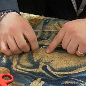 Parole de Chef de l’Atelier : « Un travail Artisanal, Fait main, c’est une véritable histoire d’amour qui nous lie à l’art de la tapisserie et qui nous donne le courage de les nettoyer et restaurer à la main comme en le fait depuis des siècles»