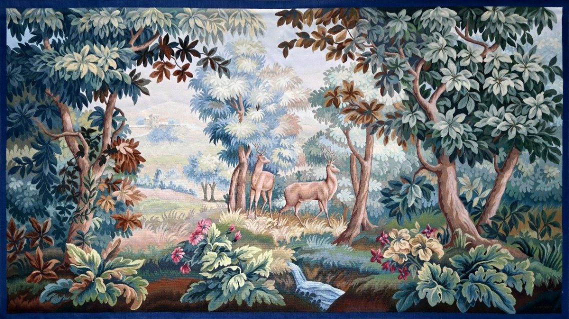 La galerie propose (ou a proposé) plusieurs tapisseries de type Verdure — ce sont des tentures murales décorées principalement de motifs végétaux (forêts, feuillages), généralement issues de la manufacture d’Aubusson :